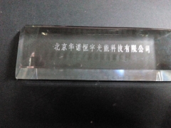 北京华诺恒宇光能科技有限公司专业承接各种水晶玻璃制品的激光加工、打标、刻字全方位激光加工服务商.公司拥有多台先进激光加工设备、和高素质的工程技术人员。 本公司批量制作加工水晶玻璃刻字、水晶玻璃工艺品刻字、水晶玻璃奖杯激光刻字、水晶玻璃工艺品镭射等水晶玻璃材料的刻字打标加工业务,水晶玻璃产品一直深受广大人群的喜爱,水晶玻璃制品也应用于各种行业内,例如水晶玻璃奖杯、水晶杯、高档水晶杯、水晶玻璃球、水晶玻璃挂件、水晶玻璃底座等。本公司从事多年的激光加工业务,水晶玻璃制品加工做工精良,做工高效。激光加工为非接触性加工,标刻图案文字精细美观,永不磨损,不会损坏被加工物品。 北京华诺恒宇激光加工中心,可根据客户的要求做出各种不同的效果。我们将以优惠的价格,优质的效果,服务于广大客户,可签订大单以及常年合作,交货及时,免费打样,交通方便,服务良好,竭诚欢迎各界朋友莅临与咨询。 真诚期待您的光临,加工热线: 18210969971 地址:北京市丰台区南三环玉泉营桥西春岚大厦